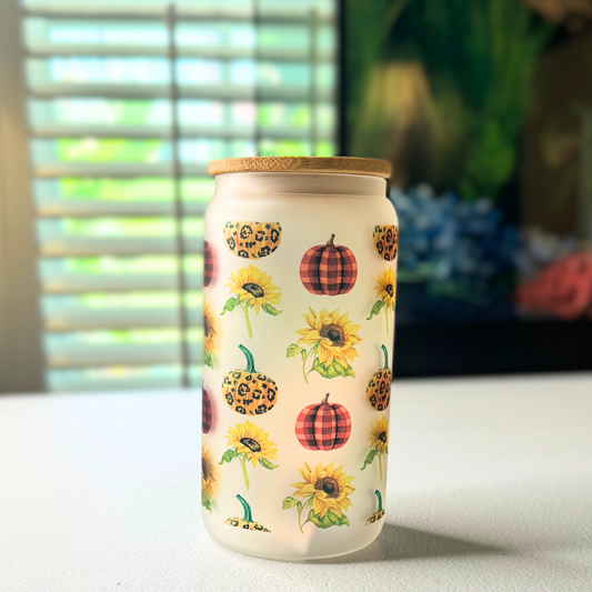 16oz Glass Tumbler - Pumpkins & Sunflowers