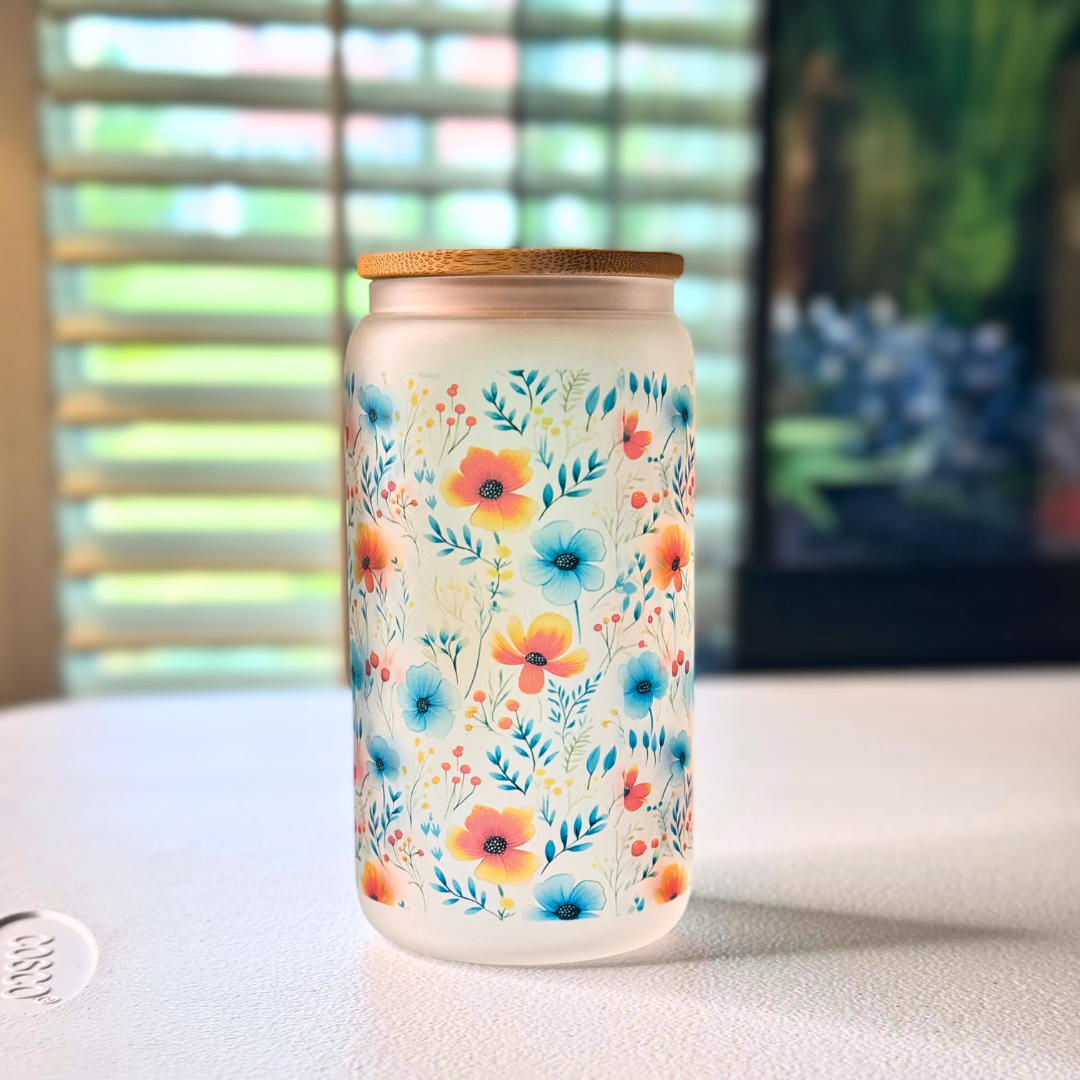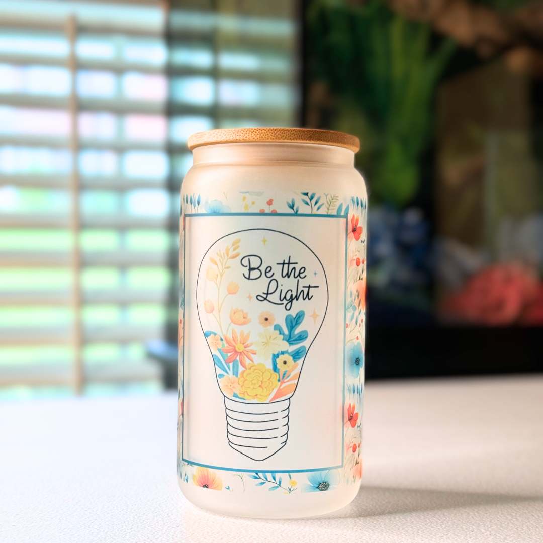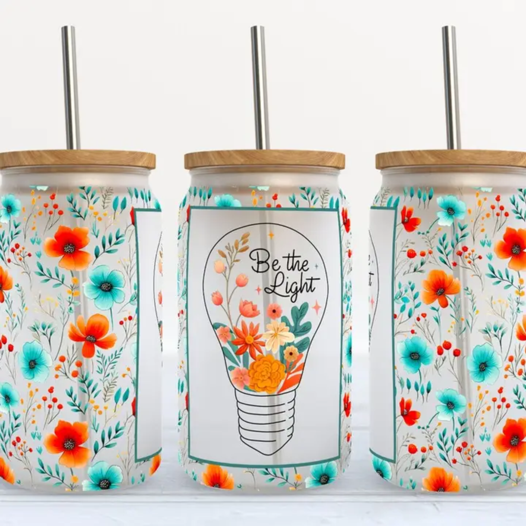 Indulge in a touch of sophistication with our 16oz Frosted Glass Tumbler. Crafted from premium Libbey Glass, this tumbler is perfect for your iced coffee, water, or any cold beverage. Adorned with a vibrant floral pattern and inspiring words, 'Be The Light', it's a true work of art. Gift one to yourself or a loved one for a luxurious and thoughtful treat.