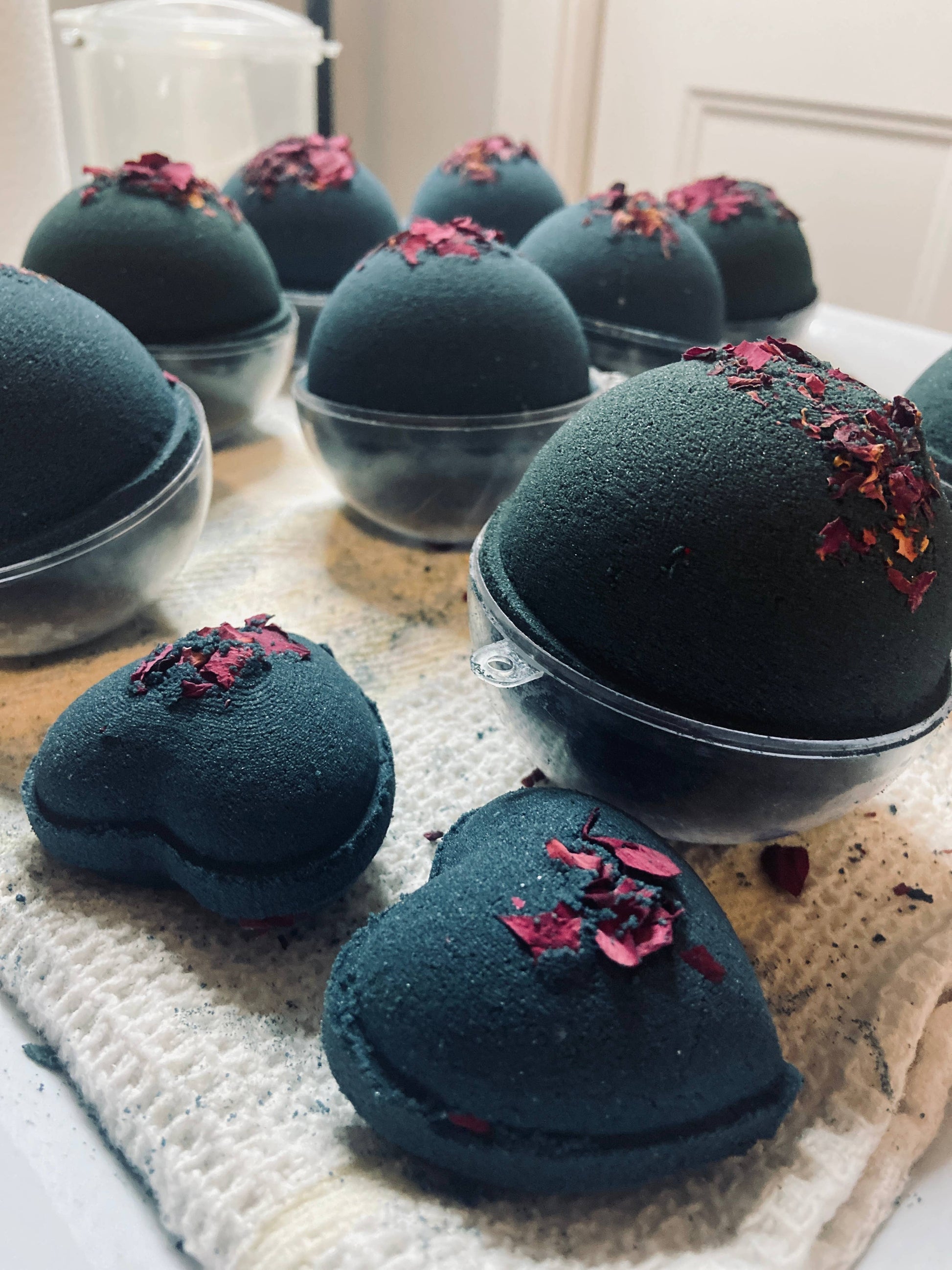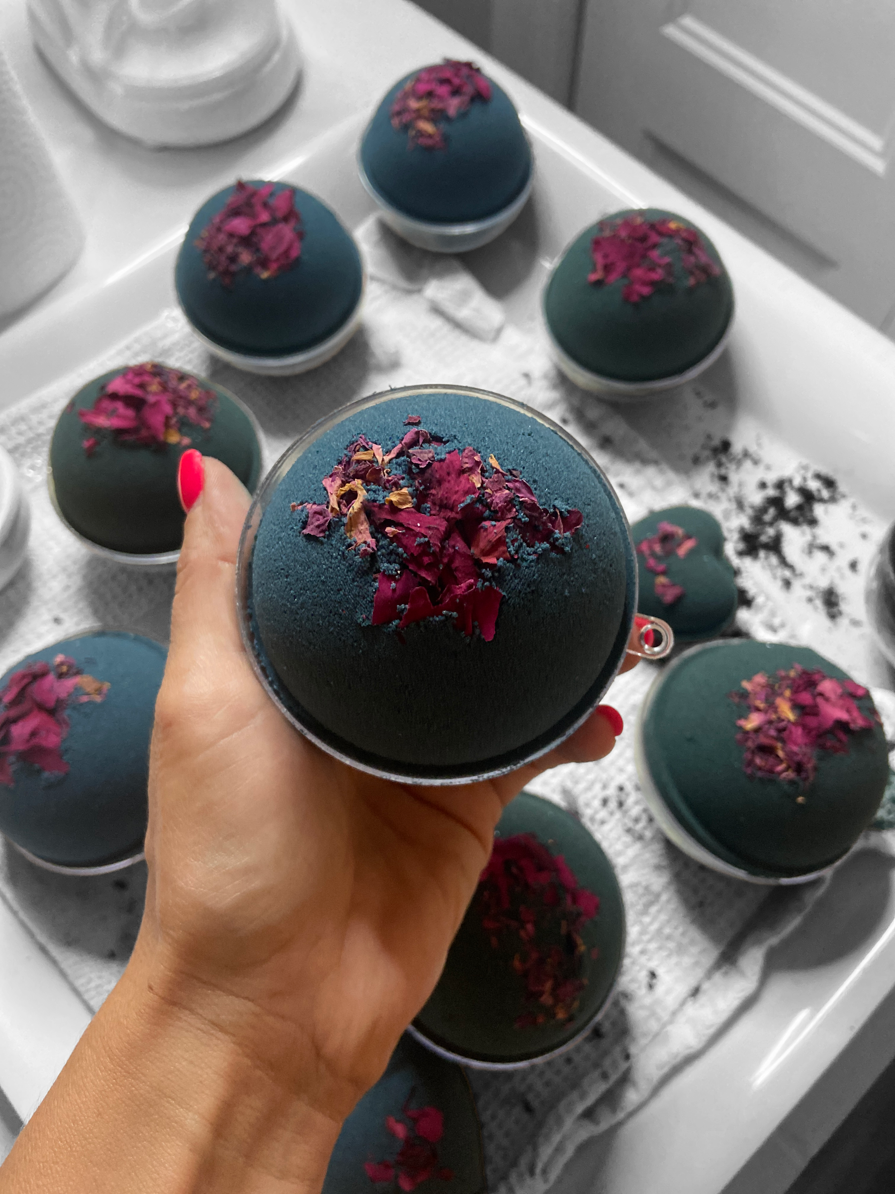 Indulge in a decadent bathing experience with our Before Midnight Bath Bomb. Immerse yourself in a warm, seductive, and evocative fragrance that harmoniously blends notes of vanilla, sandalwood, patchouli, and blackberry. This expertly crafted combination creates a sophisticated and romantic scent that envelops your skin even after your bath. Unwind, rejuvenate, and let the alluring aroma transport you to a realm of exquisite pleasure. Has not been shown to stain tubs. Color: Dark Blue