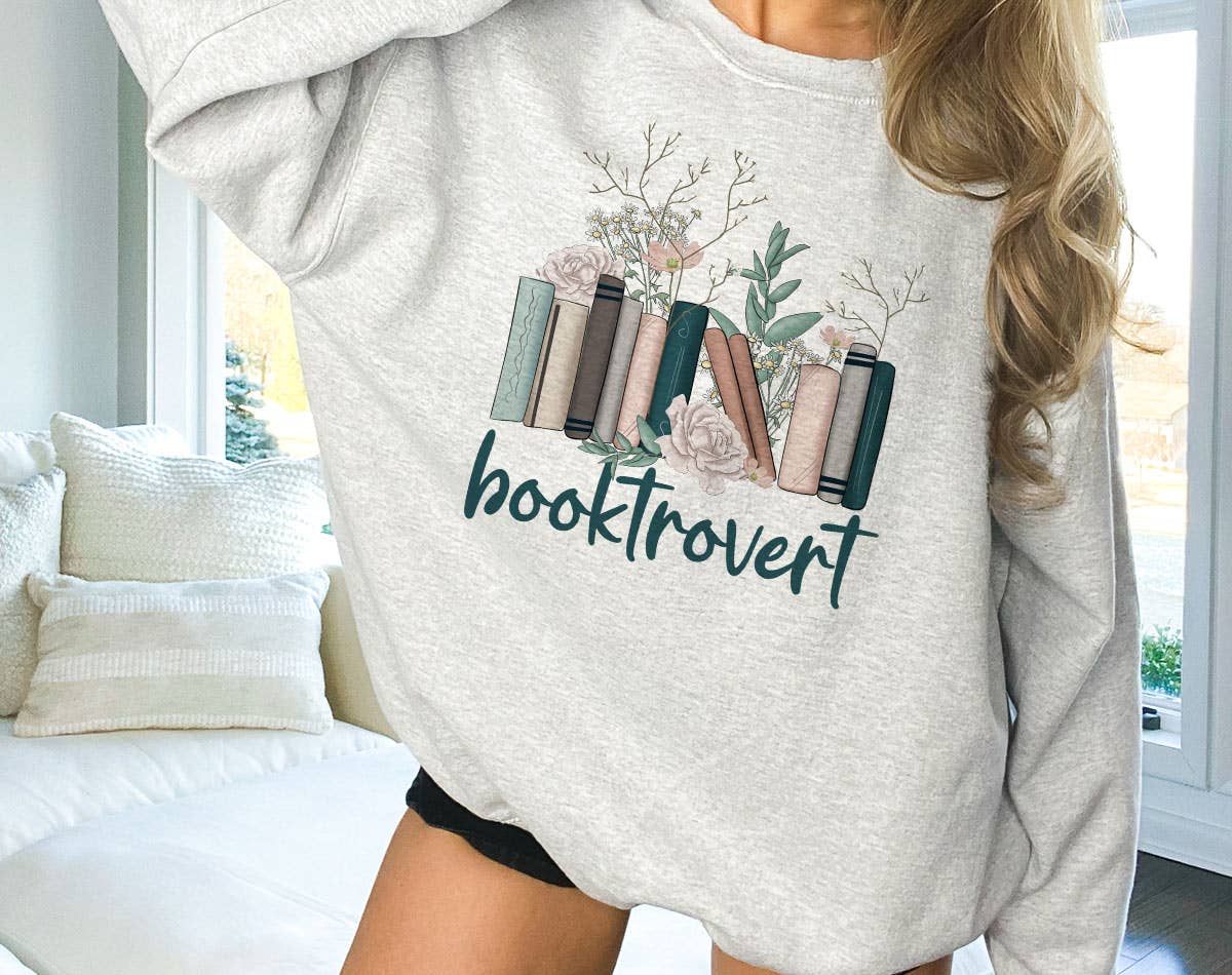 Introducing our Booktrovert sweatshirt! This beautiful piece features the iconic word 'Booktrovert' across the front, proudly showcasing your love for reading. Crafted from a premium 8oz side seamed 80/20 cotton poly blend, this unisex sweatshirt is the perfect addition to your wardrobe. Its slightly oversized design is both flattering and comfortable, making it a step above your typical sweatshirt. Trust us, we've tried them all and this is the one our customers can't get enough of! Perfect for the cooler temps!