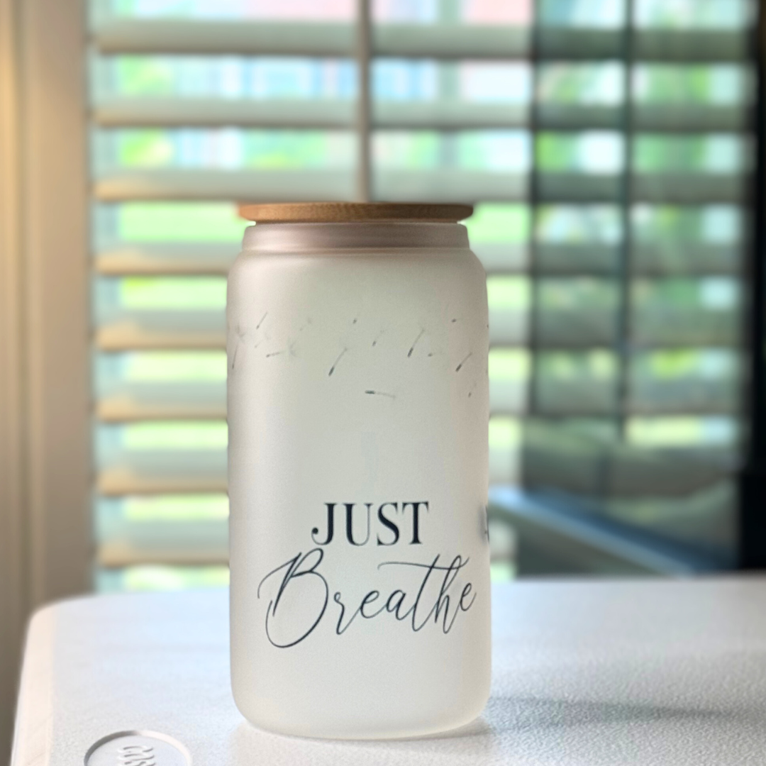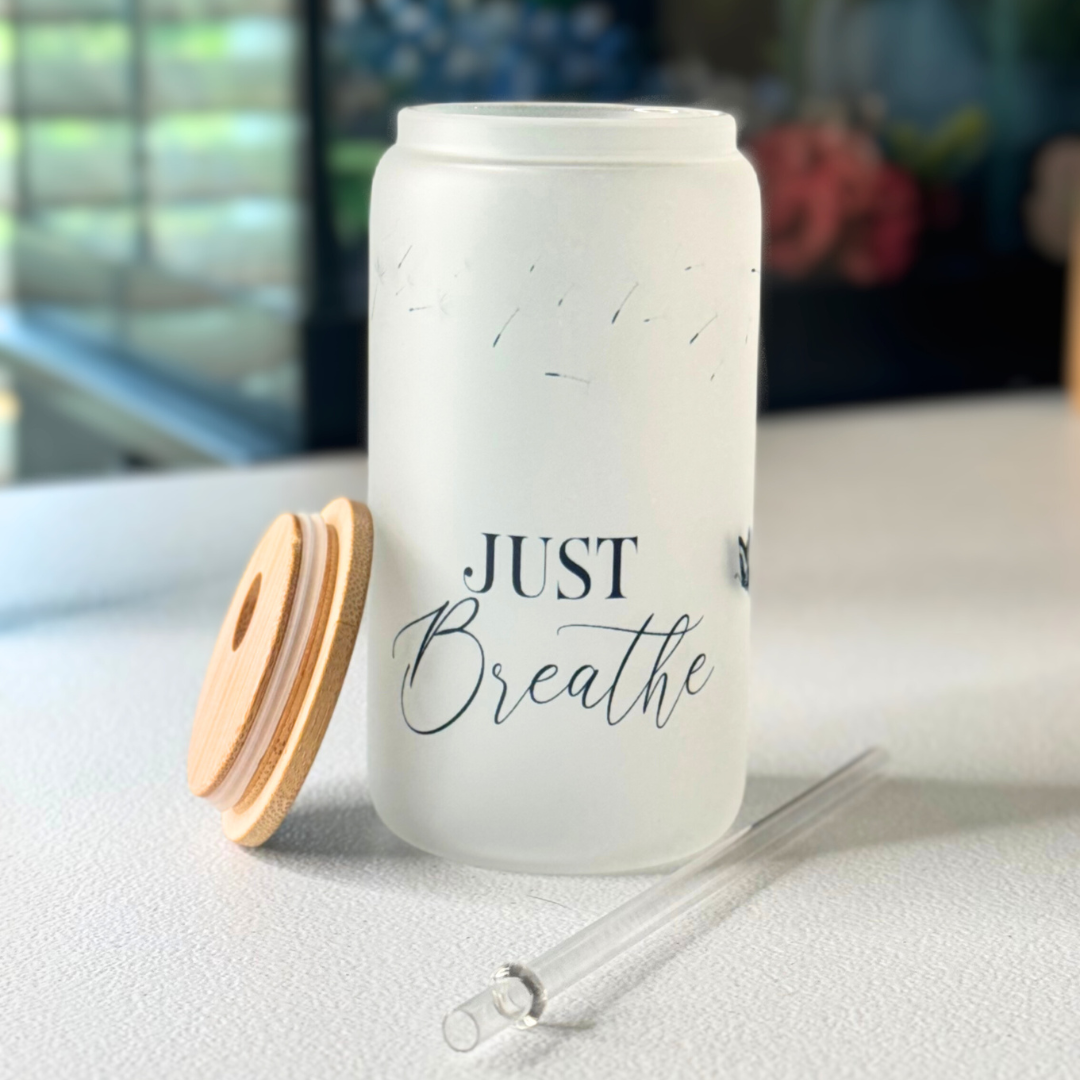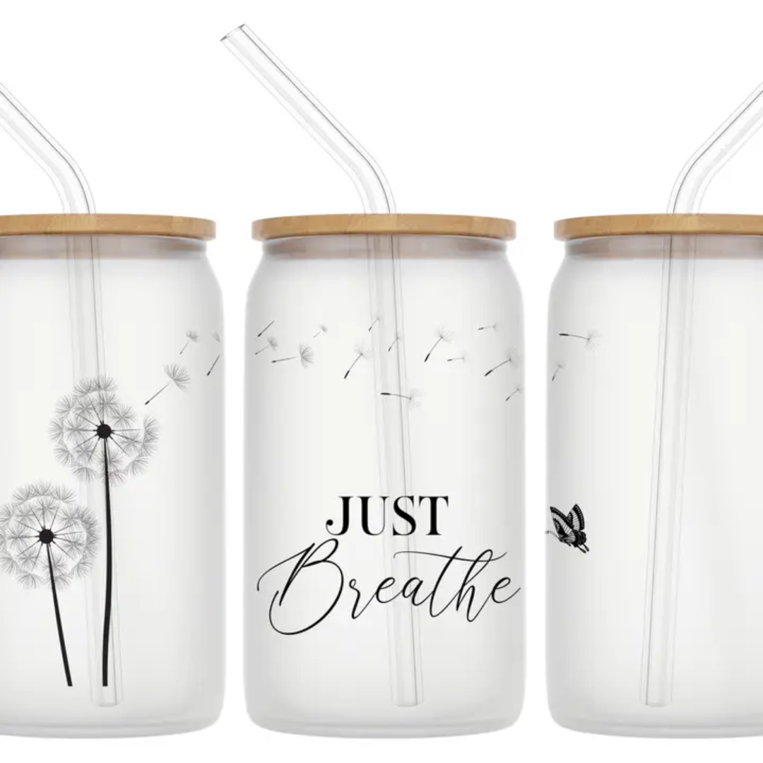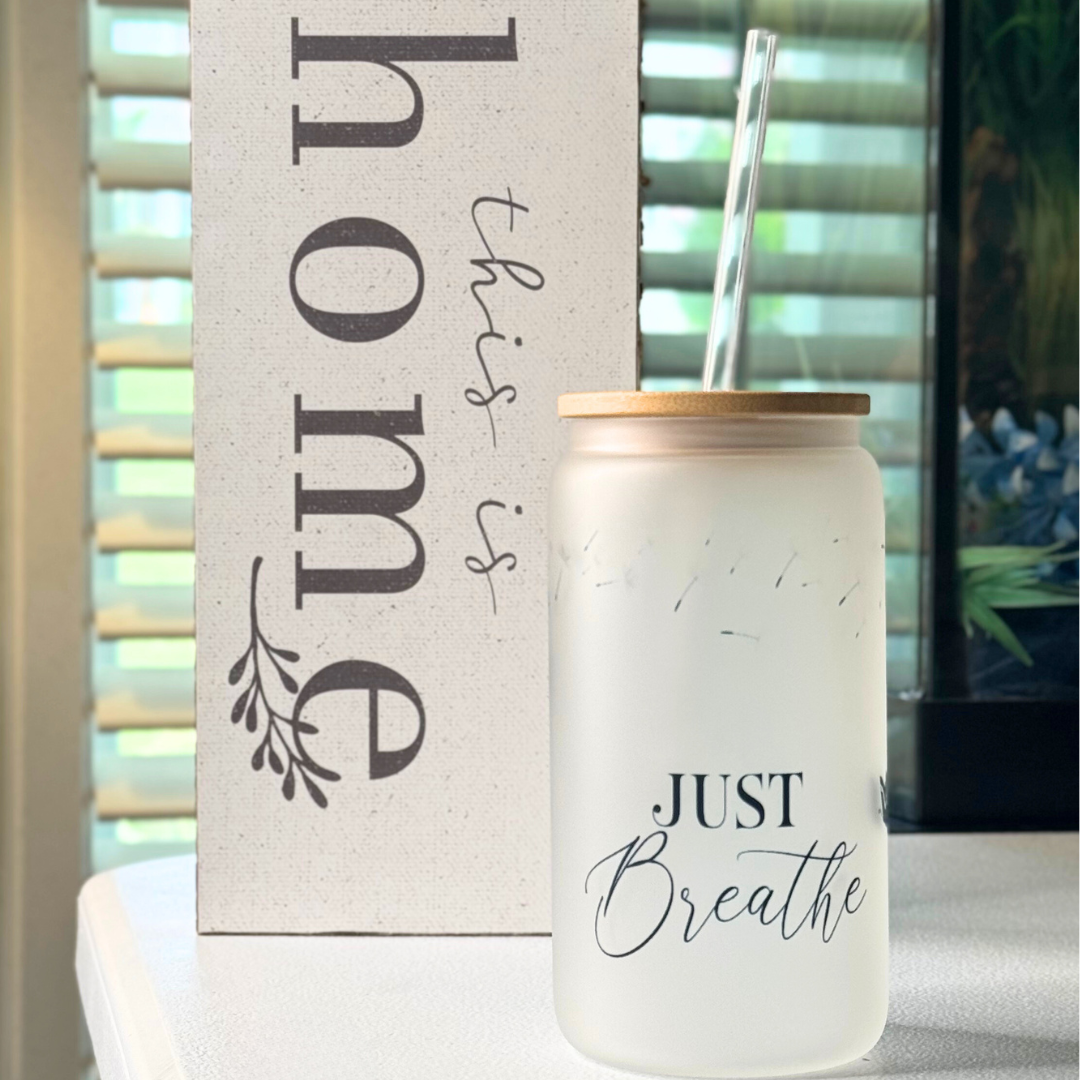 This adorable 16oz Libbey Glass Tumbler is perfect for your iced coffee, water, or your favorite cold beverage. This Glass Tumblers is handmade using premium Libbey Glass with sublimation Images that won't peel..featuring the words 'Just Breathe'. Grab one for yourself or give to a family member, friend, or coworker these make excellent gifts.